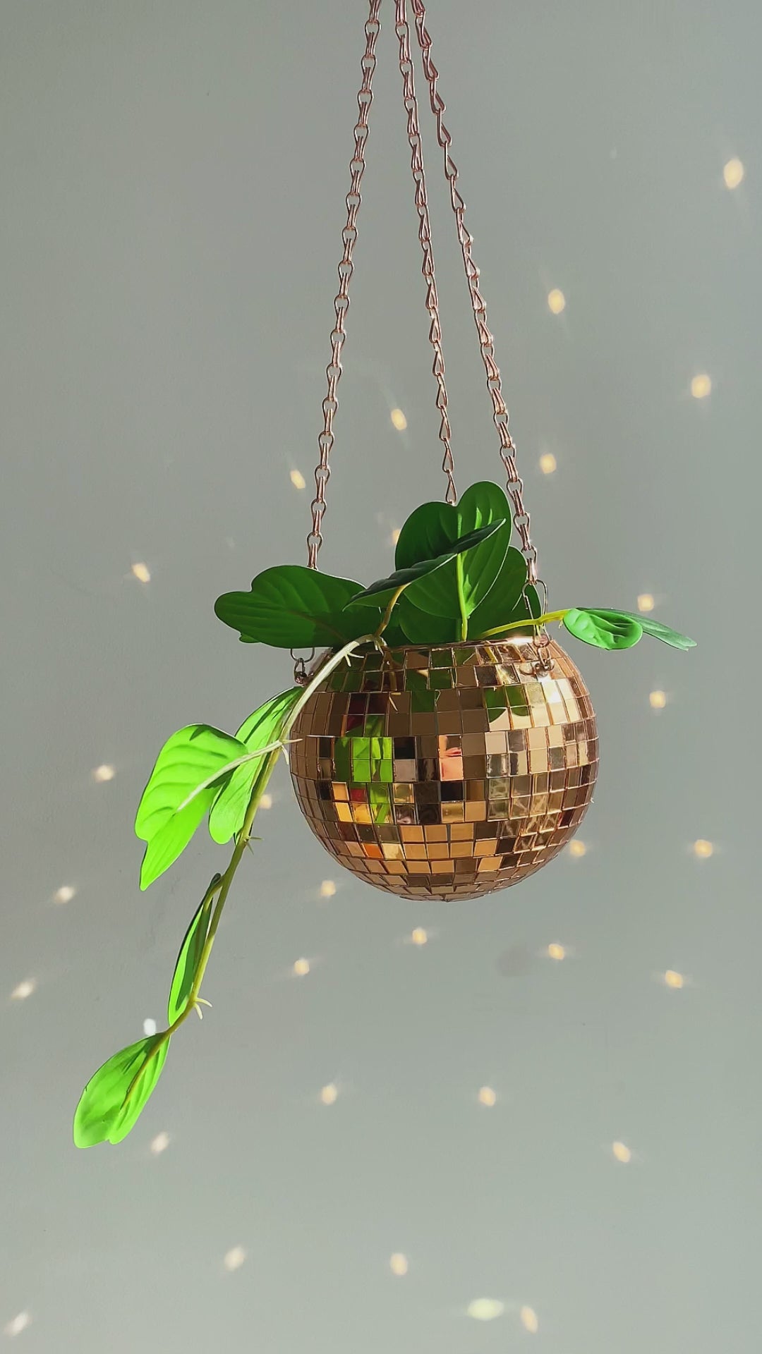 These super-cute super-funky indoor hanging planter pots bring all the groovy glamour of the dancefloor directly to your living room. And they do it by bathing your living space in a gorgeous rose gold hue 🌹